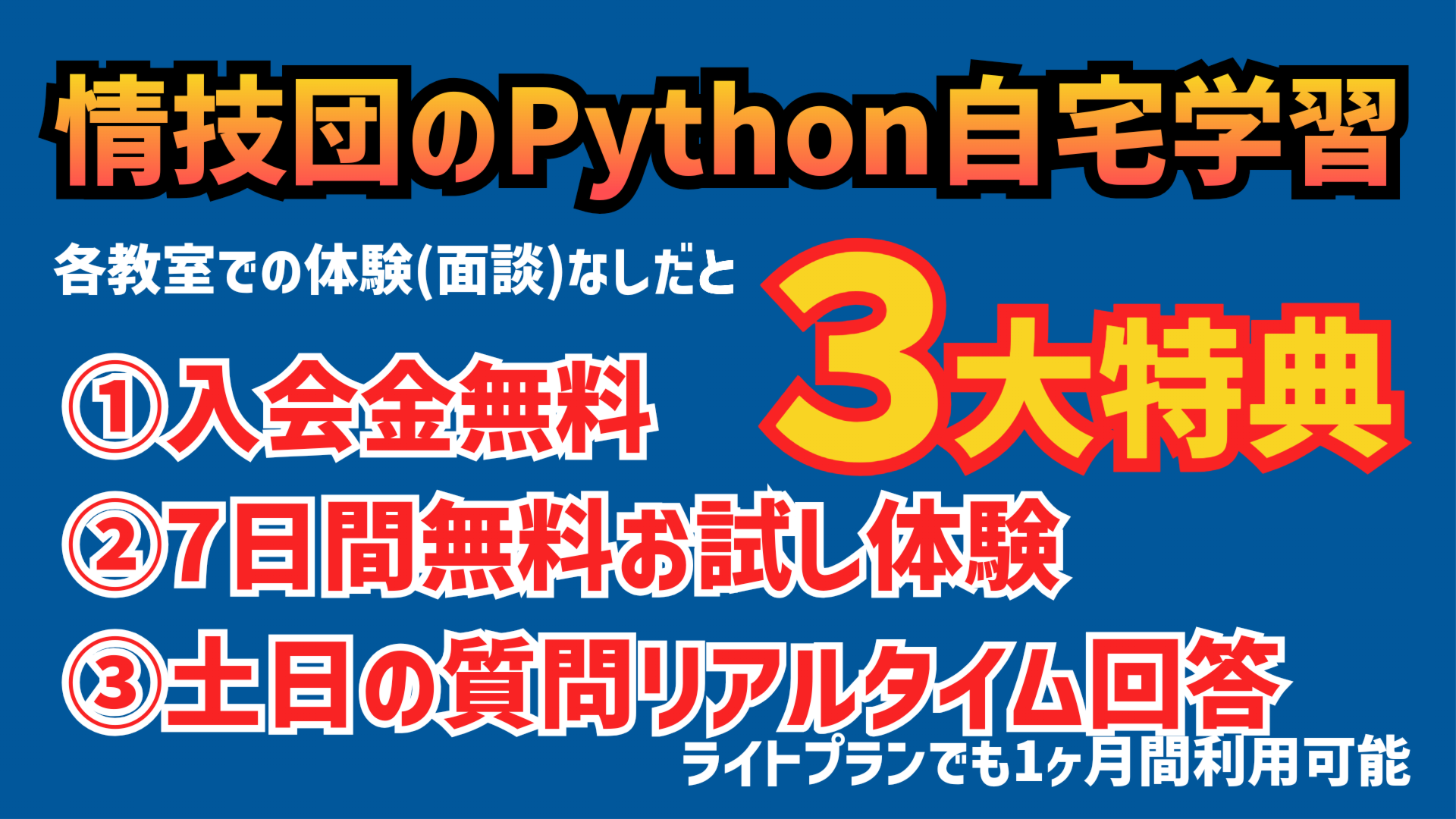 Pythonライトプラン(月額5,500円)は、もともと情技団に通う受講生のほぼ全員が徳島市内だったため、徳島市以外にお住まいの方も気軽に試して欲しいので始めましたが、2026年4月から新規入会者さんは、月額11,000円に戻します。徳島県外の方はそのまま月額5,500円で可能です。(すでにライトプランの受講生さんはそのまま5,500円でご利用いただけます)